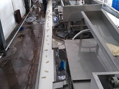 本條生產線是我公司從臺灣引進的面筋卷自動化生產流水線,其核心設備為全自動面筋卷纏繞設備,該設備自動完成面筋的進料、下料、調理、切割、纏繞、退筷等程序,實現了從進料...